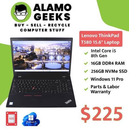 A Lenovo ThinkPad T580 laptop is up for sale, ready to handle your home or business computing needs. The laptop has been thoroughly tested by our experienced A+ Certified Technicians and includes a GENUINE installation of Windows 11 Professional. In addition, a factory restore partition and a license are included if you need to reinstall Windows 11. We also have Microsoft Windows Defender Antivirus and LibreOffice, a free alternative to Microsoft Office.