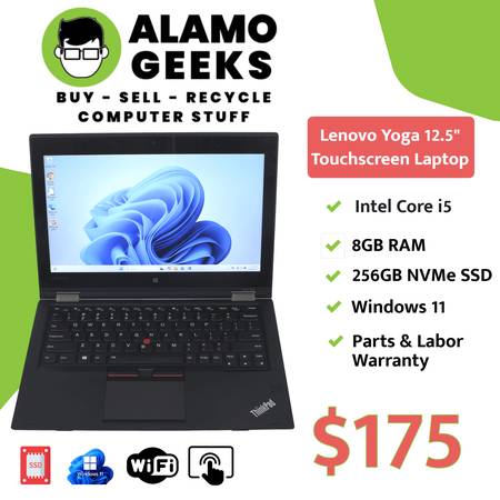 A Lenovo ThinkPad Yoga 260 laptop is up for sale, ready to handle your home or business computing needs. The laptop has been thoroughly tested by our experienced A+ Certified Technicians and includes a GENUINE installation of Windows 11 Professional. In addition, a factory restore partition and a license are included if you need to reinstall Windows 11. We also have Microsoft Windows Defender Antivirus and LibreOffice, a free alternative to Microsoft Office.