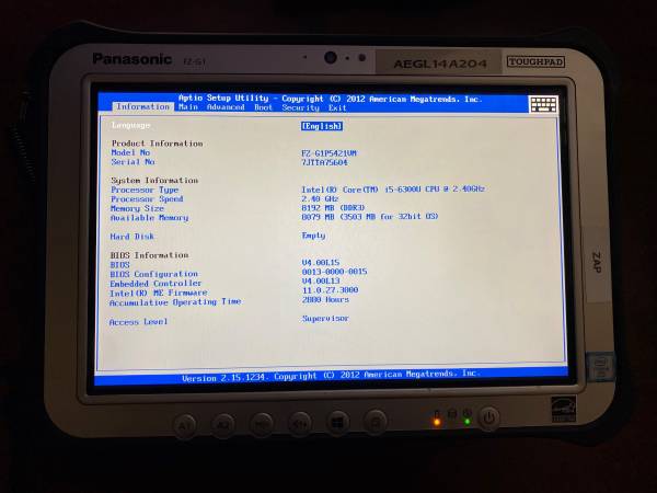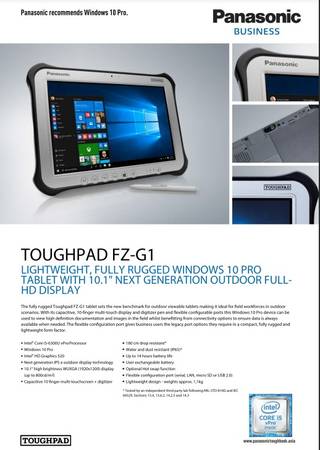 Excellent condition Panasonic Toughpad/Touch screen, Part #: FZ-G1P5421VM