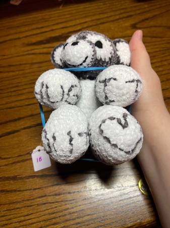 This is for “Hug It Out ❤️ “ #1, Grey and white Paws have: “HUG” “IT” “OUT” “ ❤️” These are all handmade by me, so they will all turn out a little bit unique. The patterns are also my design. Smoke...