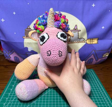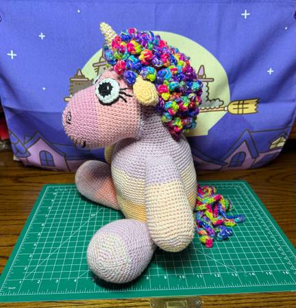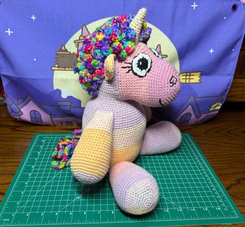 A sweet unicorn that’s waiting patiently for a new home! NOT appropriate toy for pets or small children These are all handmade by me, so they will all turn out a little bit unique. The patterns are...