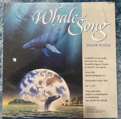 New 21zero-five71-442seven (text only) (cash only) 1990 ocean ecology WHALE SONG jigsaw puzzle - SCHIM SCHIMMEL art - SEALED NEW