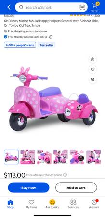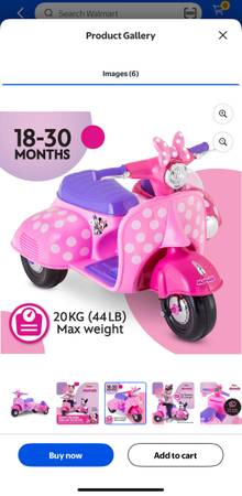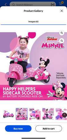 New 21zero-five71-442seven (text only) (cash only) 6V Disney Minnie Mouse Happy Helpers Scooter with Sidecar Ride-On Toy by Kid Trax, 1 mph