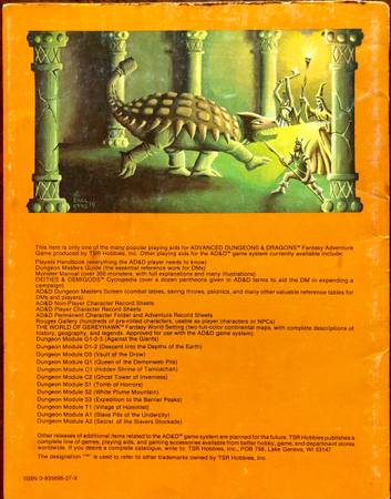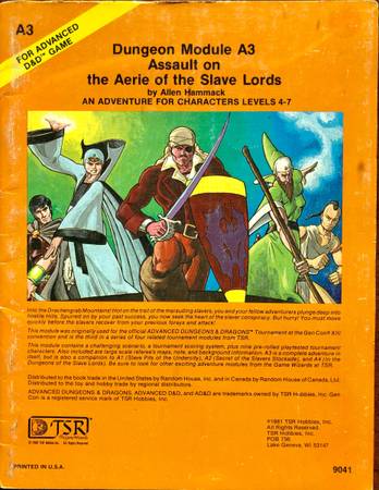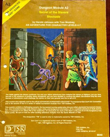 Dungeons & Dragons modules Price varies per module: -A2 Secret of the Slavers Stockade $23 -A3 Assault on the Aerie of the Slave Lords $22 -B1 In Search of the Unknown $25 -B1 In Search of the...