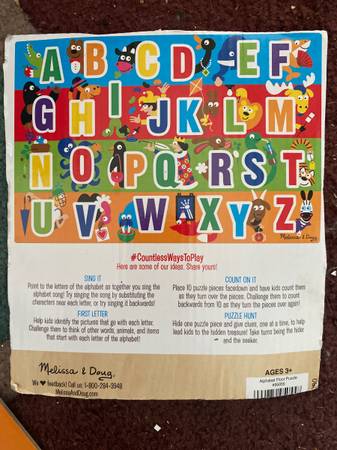 ABC Floor Puzzle by Melissa & Doug, 36 pieces, Measurement when finished: 34"x22.5". I have many other puzzles, if interested to check it out