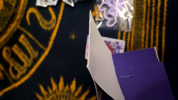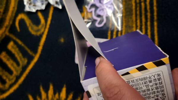 Box opened from bottom to check card. Can be closed by request. This box was opened incorrectly and can not be resealed but I can shut it with glue for a better aesthetic when gifted. The bag for the chain and Stitch himself are unopened and sealed.