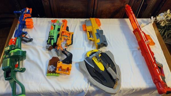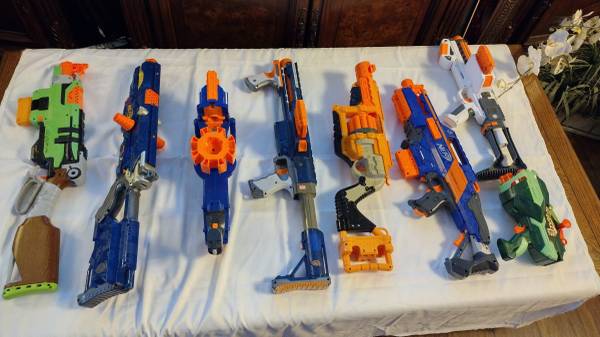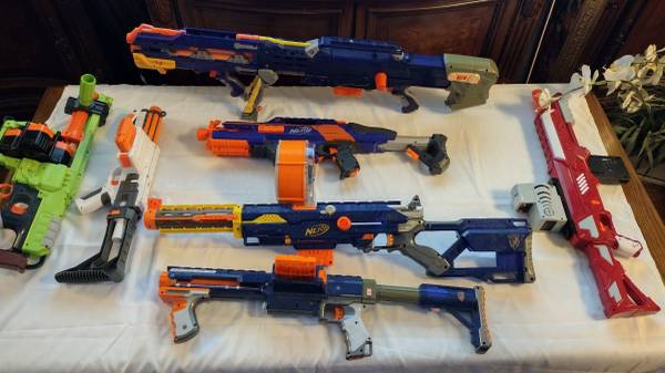 Nerf Guns assortment. Various sizes with prices ranging from $1 - $30. Each Nerf gun can be sold individually or can buy the entire assortment in bulk for a set price. All prices vary by size for...