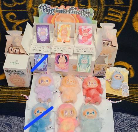 Authentic Popmart Labubu. I can help buyer authenticate with boxes and tags. Boxes opened from the bottom to confirm card but I can reseal if necessary. All boxes have drawstring bag. Pin for Love opened from top. BIE PopNow Luck box unopened and sealed, presumed to have drawstring inside because it was ordered recently. Buyer pays shipping if necessary. Can meet locally in San Antonio, TX. I accept PayPal, Venmo, and Cashapp.