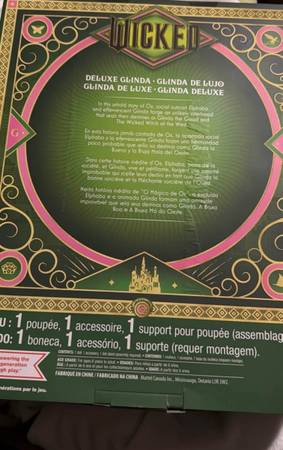 This deluxe Glinda doll has never been opened, it has the factory error with the wrong website listed on the box.