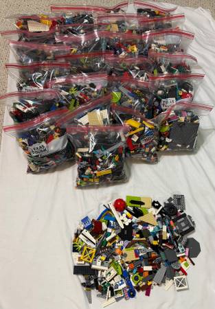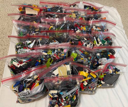 Clean used Legos - no off brands. Each gallon bag weighs 2 lbs. $9.00 a bag. I poured out the contents of 1 bag to show the approximate amount of Legos you will get with each bag. Great way to see if your kids really want to build, before investing in expensive sets, or just something to keep them busy. No minifigures in the bags, but if you buy 4+ bags, I can add a couple of commons for each bag purchased. Located in Schertz. Cash only.