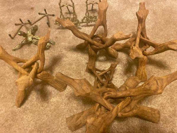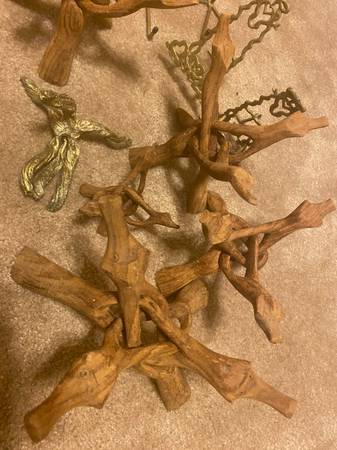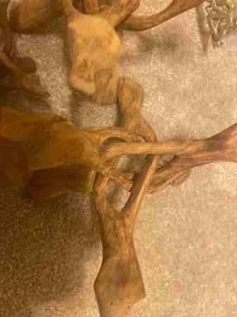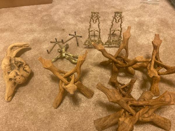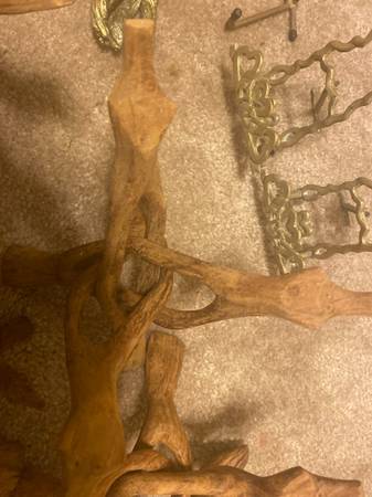 Antiquw Wooden and brass Tripod Stands. This was used for a rock collection. all in picture for $60