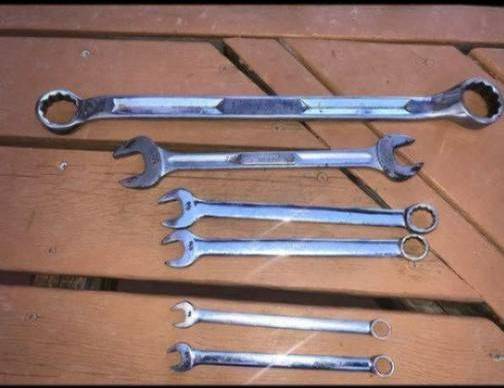 In good condition $100 for all 6 Great Deal. Meet in Schertz off of I 35 and FM 1103 Thanks for Looking POC two 3/8 wrenches one 9/16 wrench one 5/8 wrench one 3/4-7/8 wrench one 1 1/8 wrench TOOLS