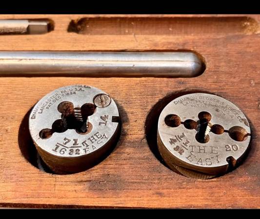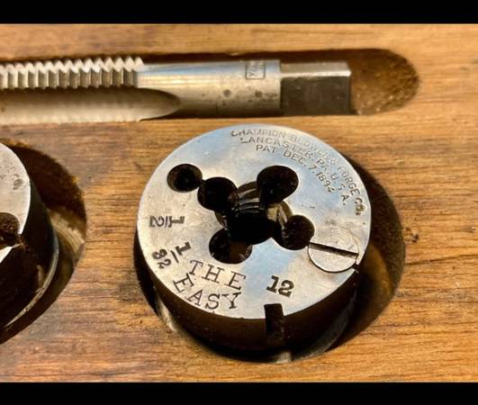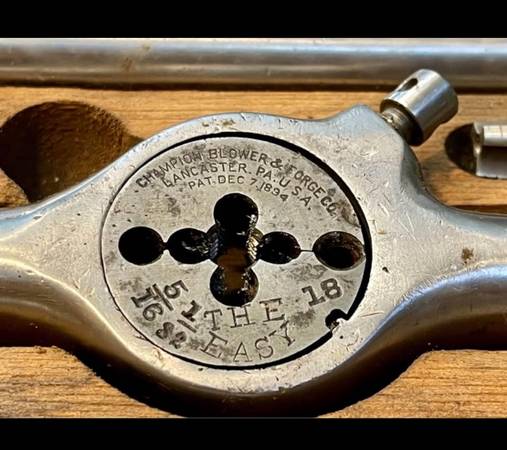 Champion Blower & Forge Co., Lancaster, PA. Patent Dec 7 1894 “THE EASY” Blacksmith Die Set. Sizes of the dies: 3/4, 1/32, 10 5/8, 1/32, 11 1/2, 1/32, 12 7/16, 1/32, 14 3/8, 1/32, 16 5/16, 1/32,...