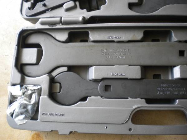water pump , timing chain or the or the fan clutch. includes 5 wrenches universal pulley holder plus pin set.