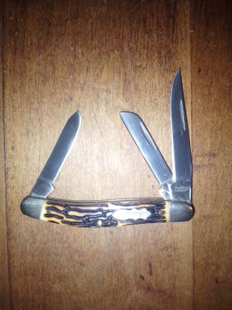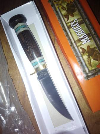 For Sale by Owner: Brand New in Box is a Marble's Hunter's Knife and Leather Sheath. The knife has a Wood handle with Turquoise and Brass Rings, and Brass one-sided Guard. Overall Length is 9 inches and a 4.5" Clip Blade. And New Schrade Uncle Henry Model 897. Great snap & all 3 Blades with zero side to side wobble. (All Photos are of The 2 Knives You Get For only 35 bucks)