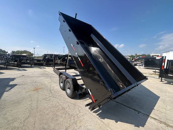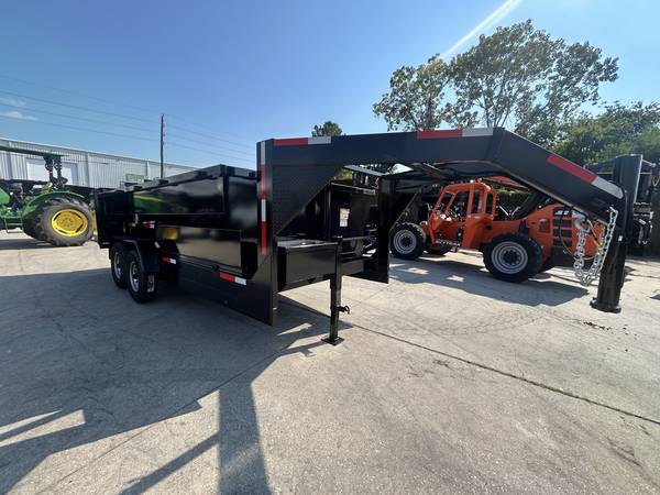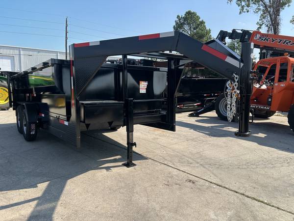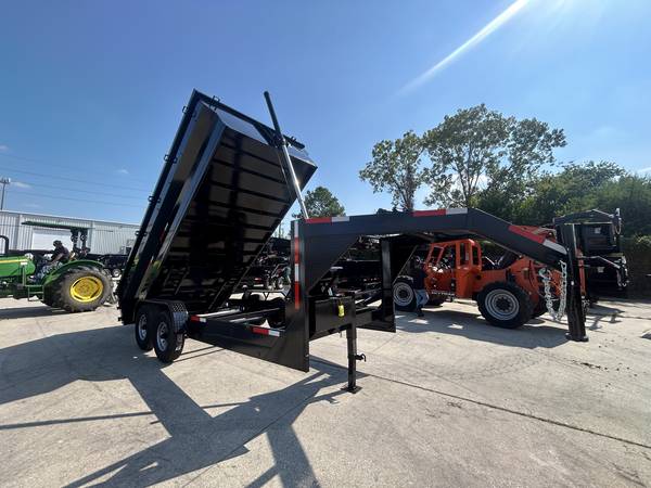 Stock# SB075960 This trailer is for sale at Crazy Trailer World in Houston Texas. We offer financing with approved credit. We have over 500 Trailers in stock at our Texas locations. New TP DT71614KGN 82"x16' Gooseneck Dump Trailer with 36" sides RAMPS ARE NOT STANDARD BUT ARE INCLUDED IN PRICE!! TARP IS NOT INCLUDED BUT AVAILABLE FOR PURCHASE !! Trunnion Mount Dual 7,000 lb Direct Lube 8 lug (electric brakes on both axles) Heavy Duty Slipper Spring Suspension New 16" ST235/80R16 10ply radial LRE Double swing doors (open like barn doors) Electric over hydraulic (1.7 gpm) - power up / gravity down Front locking tool box - contains battery and pump Multi stage trunnion mount telescopic cylinder 12,000 lb drop leg jack All flush mount or recessed LED stop / turn / clearance lighting U.S. made sealed modular wiring harness DOT required emergency break-a-way kit and conspicuity tape & Prop Rod Fully primed and painted with automotive grade acrylic enamel
