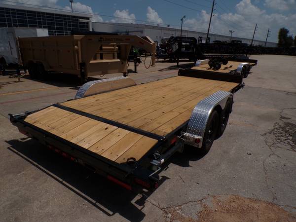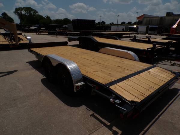 stock # T1363618 This trailer is for sale at Crazy Trailer World in Houston Texas. We offer financing with approved credit. 83" x 18' Tandem Axle Carhauler Trailer * ST205/75 R15 LRC 6 Ply. * 5" Channel Frame* Coupler 2" Adjustable (4 HOLE)* Treated Wood Floor w/2' Dove Tail * 2 - 3,500 Lb Dexter Spring Axles (1 Elec FSA Brake)* Diamond Plate Alum. Tear Drop Fenders (removable)* REAR Slide-IN Ramps 5' x 16" (carhauler)(Dove)* 24" Cross-Members* Jack Swivel 5000 lb. (10")* Lights LED (w/Cold Weather Harness)* 4 - D-Rings 3" Weld On* Road Service Program * Sport Box* Spare Tire Mount* Black (w/Primer)CH8318032 Please contact Crazy Trailer World to verify this trailer is still available. All prices are subject to Tax, Title, Plates & Doc Fees. All Trailers are discounted for Cash or Finance Price! We charge a convenience fee on credit card purchases. Crazy Trailer World is not responsible for any Typos, Errors or misprints. We also have a fully stocked selection of trailer parts and offer trailer service