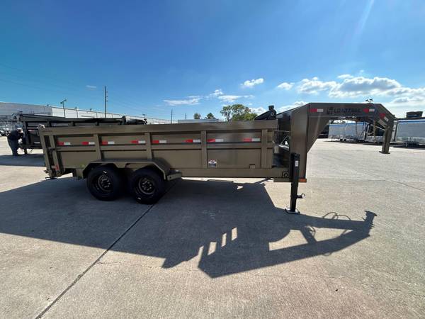 stock # T3368881 This trailer is for sale at Crazy Trailer World in Houston Tx. We offer financing with approved credit. 83" x 16' Tandem Axle Gooseneck Low-Pro Dump Trailer * ST215/75 R17.5 LRH 16 Ply. (Singles)(BLACKS WHEELS)* Standard Battery Wall Charger (5 Amp)* Coupler 2-5/16" Adj. Rd. 12 lb. (Standard Neck and Coupler)* 2-8000Lb Dex Spring Axles(2 Elec Brakes)(OIL BATH D 80 N)* Diamond Plate Fenders (weld-on)* REAR Slide-IN Ramps 80" x 16"* 16" Cross-Members* Jack Spring Loaded Drop Leg 2-10K* Lights LED (w/Cold Weather Harness)* 4 - D-Rings 4" Weld On* Rear Support Stands (2" x 2" Tubing)* Road Service Program * 36" Dump Sides w/36" 2 Way Gate (7 Gauge Floor)* 1 - MAX-STEP (30")* Front Tool Box (Full Width Between Risers)* Tarp Kit Top Mount* Telescopic Cylinder* Western Metallic (w/Primer)DG8316082 Please contact Crazy Trailer World to verify this trailer is still available. All prices are subject to Tax, Title, Plates & Doc Fees. All Trailers are discounted for Cash or Finance Price! We charge a convenience fee on credit card purchases. Crazy Trailer World is not responsible for any Typos, Errors or misprints. We also have a fully stocked selection of trailer parts and offer trailer service