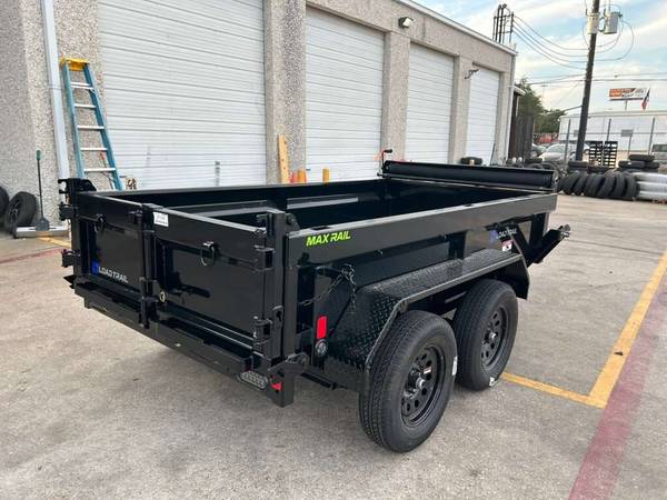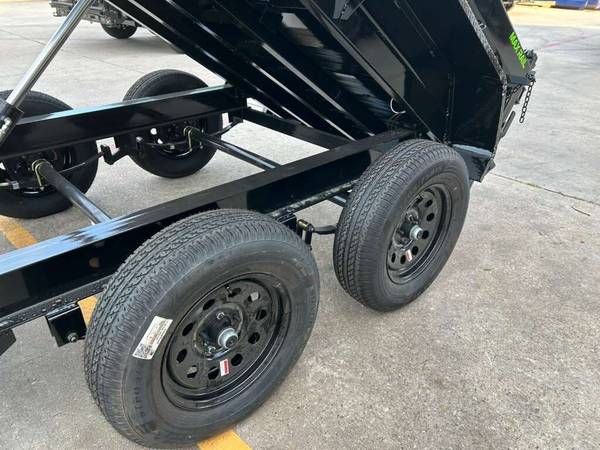stock # T2371319 This trailer is for sale at Crazy Trailer World in Houston Texas. We offer financing with approved credit. DE 60" x 10' Tandem Axle Dump Trailer * ST205/75 R15 LRC 6 Ply. * Standard Battery Wall Charger (5 Amp)* Coupler 2" Adjustable (4 HOLE)* 2 - 3,500 Lb Dexter Spring Axles (2 Elec FSA Brakes)* Diamond Plate Fenders (weld-on)* Rear Slide-IN Ramps 58" x 12"* 16" Cross-Members* Jack Drop Leg 7000 lb.* Lights LED (w/Cold Weather Harness)* 4 - D-Rings 3" Weld On* Road Service Program * 18" Dump Sides w/18" 2 Way Gate* Front Tongue Mount Tool Box* Spare Tire Mount (HD)* Tarp Kit Top Mount* Cylinder Package 3" x 24"* Black (w/Primer)DE6010032 Please contact Crazy Trailer World to verify this trailer is still available. All prices are subject to Tax, Title, Plates & Doc Fees. All Trailers are discounted for Cash or Finance Price! We charge a convenience fee on credit card purchases. Crazy Trailer World is not responsible for any Typos, Errors or misprints. We also have a fully stocked selection of trailer parts and offer trailer service