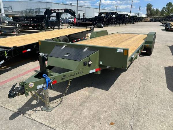 stock # T1370932 This trailer is for sale at Crazy Trailer World in Houston Texas. We offer financing with approved credit. 83" x 22' Tandem Axle Rapid Loader Tilt Deck Trailer * ST225/75 R15 LRD 8 Ply. * 5" Channel Frame* Coupler 2-5/16" Adjustable (4 HOLE)* 2 - 5,200 Lb Dexter Spring Axles (2 Elec FSA Brakes)* Diamond Plate Fenders (removable)* 16" Cross-Members* Jack Drop Leg 7000 lb.* Power Up Full Deck (Treated Pine)(w/TUFF Wireless Remote)* Lights LED (w/Cold Weather Harness)* 4 - D-Rings 4" Weld On* Road Service Program * Sport Box* Spare Tire Mount* 1/4" Plate for Winch* Army Green (w/Primer)TM8322052 Please contact Crazy Trailer World to verify this trailer is still available. All prices are subject to Tax, Title, Plates & Doc Fees. All Trailers are discounted for Cash or Finance Price! We charge a convenience fee on credit card purchases. Crazy Trailer World is not responsible for any Typos, Errors or misprints. We also have a fully stocked selection of trailer parts and offer trailer service