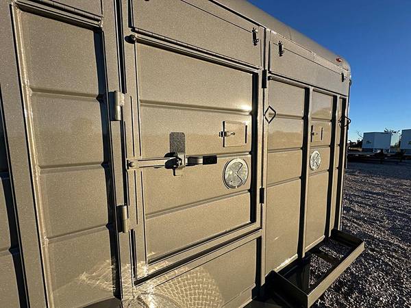 STOCK - 00228 EXOTIC GAME TRAILER 6'8"X18'X 6'6' 9 STALLS REMOVABLE STALLS FRONT STORAGE REMOVABLE STALLS VENTS IN EACH STALL RED INTERIOR LIGHTING WHITE INTERIOR LIGHTING SIDE ESCAPE DOORS INSPECTION DOORS BUTTERFLY VENTS POP UP VENTS RUBBER MATS DEXTER TORSION AXLES All Seams Caulked Before Painting 2880LB EMPTY WEIGHT 9120 PAYLOAD CAPACITY 12000LB GVWR BRAKES ON BOTH AXLES Embossed Aluminum Diamond Plate on Front and Fenders HD GATES and LATCHES TREATED WOOD FLOOR ARIZONA BEIGE **** Website: ljdsaleslampasas.com **** LJD SALES and RENTALS !! EVERY DAY IS SALE DAY !! QUALITY AT AFFORDABLE PRICES LJD SALES and RENTALS Largest Independent Trailer Dealer in Central TEXAS =======Delivery Available======= Financing Available = sheffieldfinancial.com trailersolutions-financial.com/credit_app/application/275 Skid Steer Attachments - Belltec - Jenkins - Montana - CL FAB Generac Generators 26KW and 24KW - INCL. Transfer Switch Keywords: Landscape Trailer - livestock trailers - cattle trailer - used enclosed cargo trailer - Trailer Sales - ATV trailer - Utility trailer - open trailers - Dump Trailer - Trailer Parts - Tilt Trailer - gooseneck trailer - Motorcycle Trailer - heavy and light equipment trailers - car trailers - Side load trailers - tractor trailer - Car hauler - Trailer hitch - Flatbed trailer - Enclosed trailer - Covered - Cargo -bumper pull trailer - car trailers - equipment trailer used trailers - cargo trailer - Interstate Batteries - Trailer trailer -Tilt Trailer - Equipment Trailer used Cargo trailers skidsteer attachments - land levelers - hay spear - auger - auger bits - Belltec Augers - Belltec Equipment - Generac Generators - Jenkins Equipment - CL Fab - Montana Equipment - Post Drivers - sprare tires and wheels - trailer spare tires and wheels - 18 ply tires - Creager Equipment -Tiger Trailers - AMW Trailers - Texas Pride Trailers - US BUILT Trailers - Delco Trailers - Lacosta Trailers - Lion Trailers - Triple R Trailers - Stallion Trailers - East Texas Trailers - Coffee Creek Trailers - Calico Trailers - Texline Trailers - Tow Dolly - Tow Dollies - Master Tow - Stehl Tow - B and W Hitches - B and W - Rhino Rhino Straps - chains - boomers - ratchets straps - tow hitch - trailer ball - safety straps Interstate Batteries - tri ball - Weigh Safe - Curt gooseneck balls - Warhawk Zero Turn Mowers - trailer locks - spin free ratchet straps -