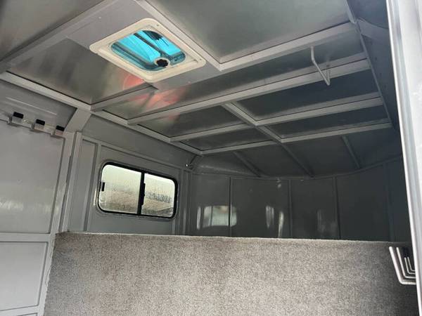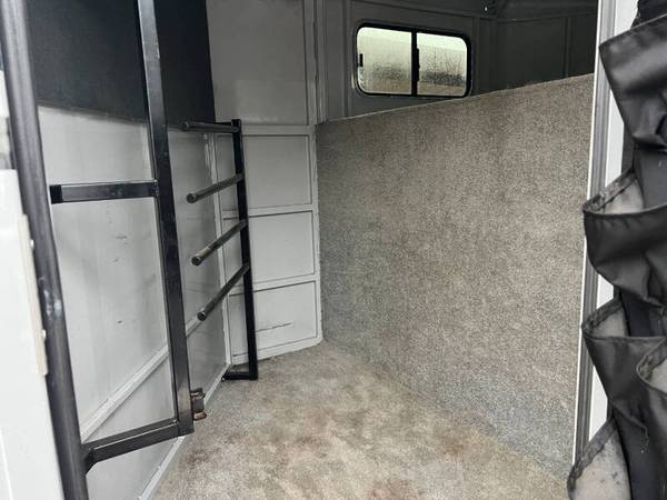 -Carpeted front tack room features a swing out 4 tier saddle rack