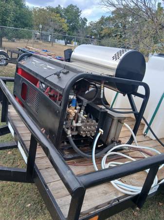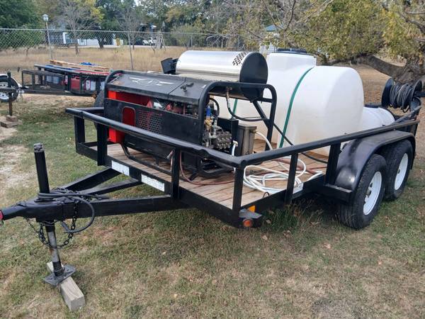I have a pressure washer for sale. It sets on a 12 foot trailer with 3500 tandem axils. It has a new wood floor in it and new tires on it. It has a new oil burner and a new coil on it as well. Has a new load valve as well. Also has a 18 hp Van Guard motor on it.The model of the washer is Alkota 4355VP. The pump has just had an oil change.{ iso 68 hydraulic fluid used}. Has a new 100 foot hose and swivel on the reel. There is an xtra 100 foot hose as well. Has a new nozzle. There are extensions that come with the wand. Has a 300 gallon fresh water tank with new sand filter. Also has a 35 gallon soap tank. It is ready to go to work. This unit new retails for $20,000. Thanks for looking at my add