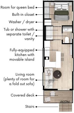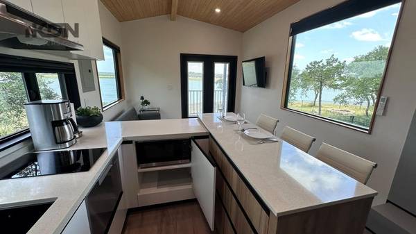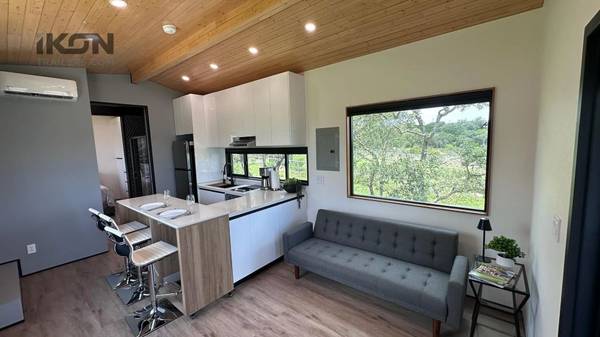 The Clever 1: The Not-So-Tiny Tiny Home is a luxurious one-bedroom manufactured home designed for high-end living. This compact yet elegant space offers a sophisticated design that maximizes every square inch, creating a comfortable and stylish living environment. Perfect for those looking for a sleek and modern housing solution without the need for a large amount of space.