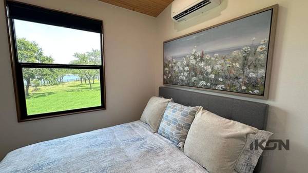 Two Senville LETO Series Mini Split Air Conditioner Heat Pumps (9000 BTU, Wi-Fi enabled), one in the bedroom and one in the living area. Plenty of heating and cooling power for even the most extreme climates, especially given the home's airtight and thoroughly insulated construction.