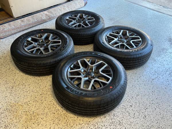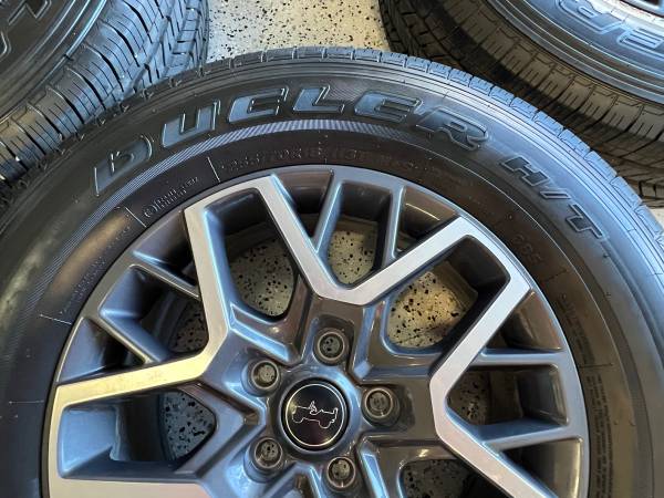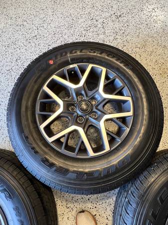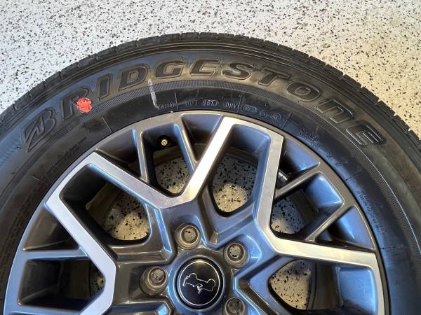 If ad is up, it’s available. No need to ask. 2024 Jeep Wrangler Wheels and Tires (5) Brand New Bridgestone Dueler H/T 685 255/70R18 113T (retail over $200/each) 18” Wheels Pickup in Boerne area.