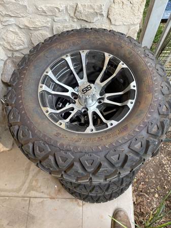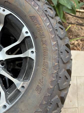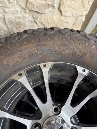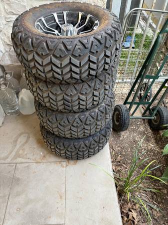 1 set of 4 - AT23x10.50-12 RHOX RXAT TIRES and MAG WHEELS for golf cart. Standard 4 hole golf cart design. Tires like new. Wheels and center caps perfect condition. Will take $200 for set. Tim New...