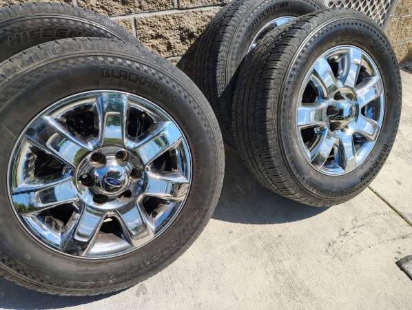 18" factory ford wheels and tires only remove to upgrade with 20" factory great deal only 500.00 for the set wheels like new and tires drove smooth with lots of tread
