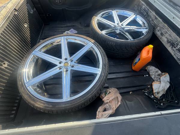 Rims an tires have them on my truck they ride smooth just gonna need a new balance. I’m upgrading to 30 inch rims. The only reason why I’m selling them out. 6 lug fit universal 80 % tire life left