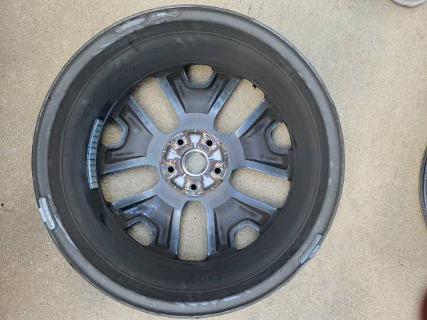 2020-2022 aluminum wheel; 20x 7.5; 49.5mm offset; 5Y spoke; 5 stud/lug 4.5 bolt pattern; machine medium charcoal metallic I have 4 wheels. Three are in good condition and one has a dent in it. I am...