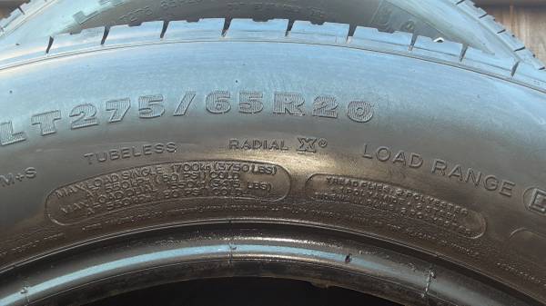 SET of 4) LT 275/65R20"Load E Michelin LTX A/T All Terrain in Very Good Condition
