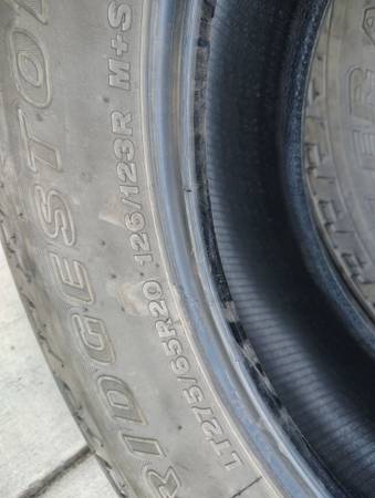 lt275/65r20 Bridgestone dueler a/t load range e, 10 ply great condition with plenty of miles left like 1.5 old only great deal 350.00 for the set