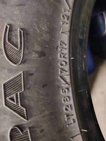 lt285/70r17 Goodyear duratrac 8 ply tires load range d, lots of tread 350.00 for the set