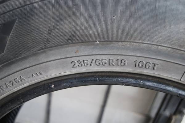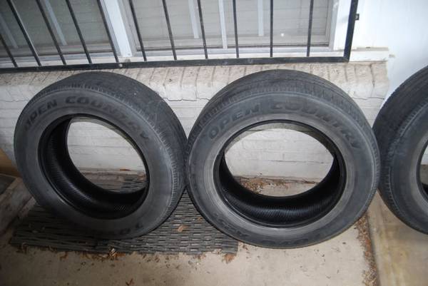 Selling a good used set of Toyo A25 Open Country 235/65/18 in good used condition. Tires have 5/32 of tread still left on them . I just replaced thee tires with some brand new Toyo tires in the same make and model . these tires run $181.00 each at disount tire. . My bill came out to right around $1,200.00 for all 4 new tires with sensors , balancing , and road hazard warranty. U can buy them as a set of 4 or a set of 2. If ur looking to sell ur used vehicle and need a decent set of tires or maybe to use them as a set of spare tires these are it .