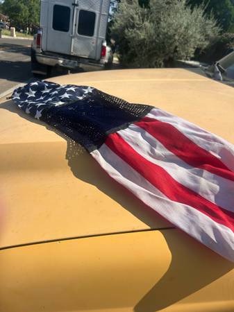 Patriotic cloth with stars and stripes design Located near bitters and 281