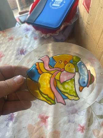Decorative suncatcher with a colorful goose design. Located near bitters and 281
