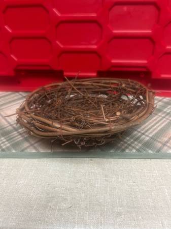 Decorative wicker nest for home decor. Located near bitters and 281.