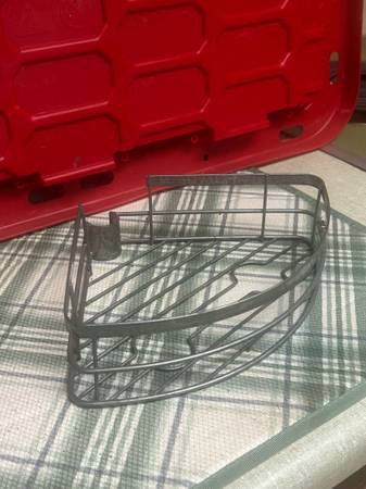 Sturdy metal corner shelf, perfect for organizing spaces. Located near bitters and 281