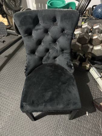 4 of the black velvet chairs, 2 of the blue velvet chairs, 2 sets of the lights from our closet and laundry room, tv stand, and 3 tvs that need work and are not fully functional.