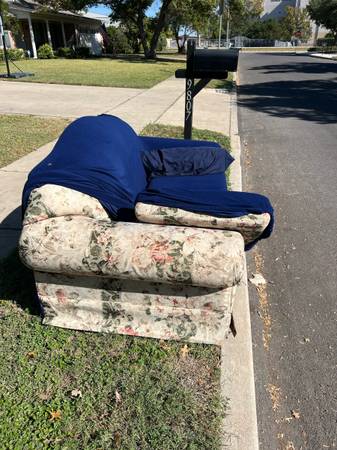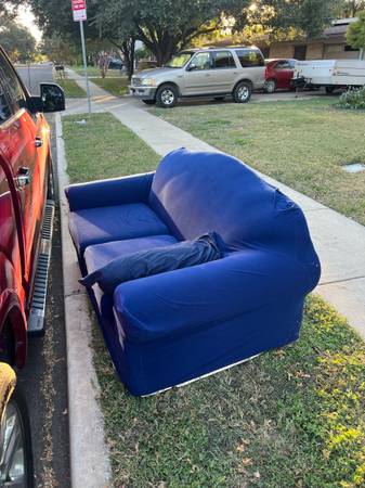 Free sofa on the curb at 9807 La Rue St First come First served.